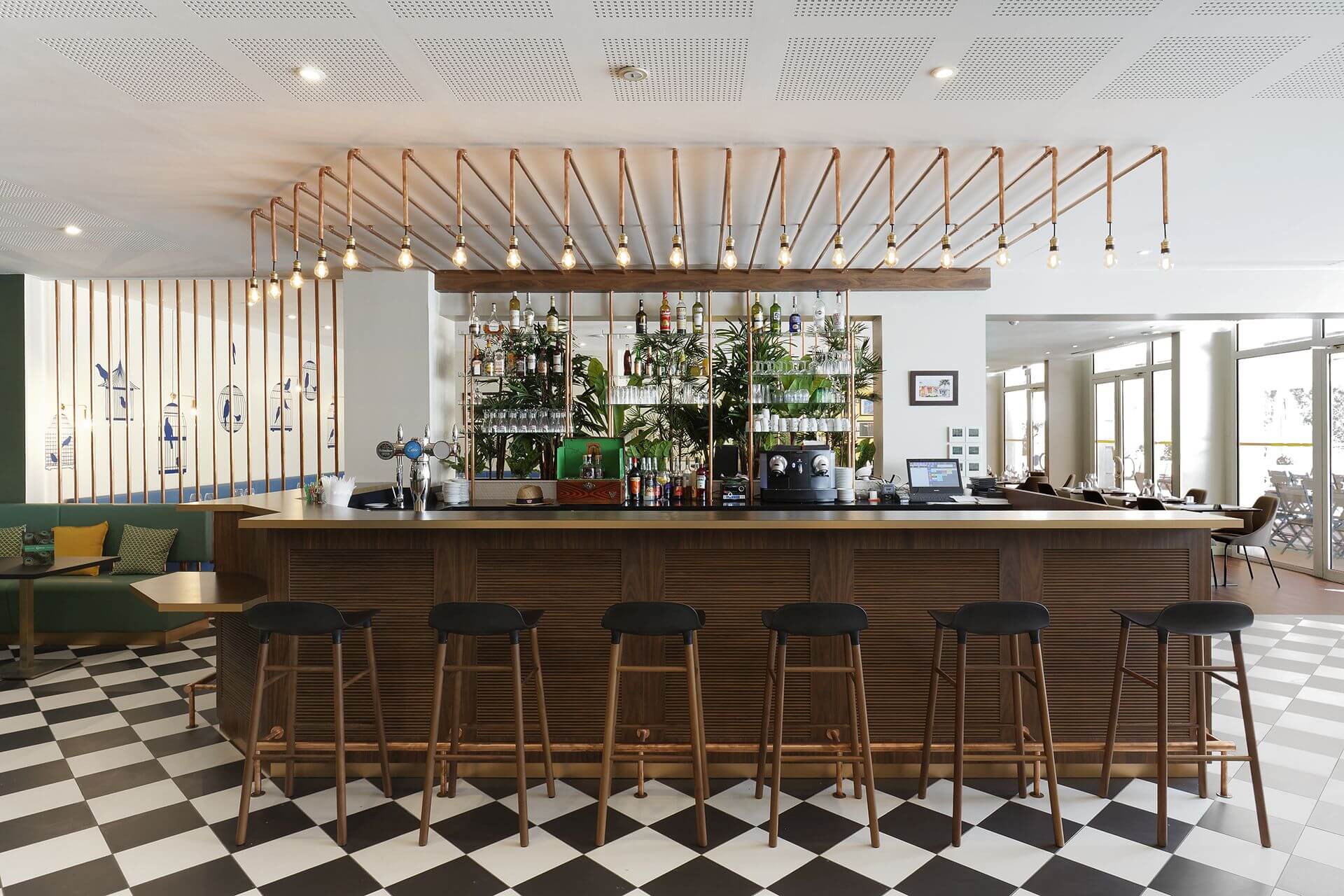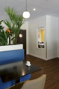 Located in Les Milles in the business heart of Aix-en-Provence, close to the TGV train station, the former hotel “Royal Mirabeau” was a building dating from the 1990’s with outdated decoration. It also had weaknesses in the fluid circulation systems (hot water, air-conditioning/heating). The new decoration of the 95 rooms, reception, bar and restaurant is an invitation to a dream trip, inspired by scenes from the East Indies to South America. Open plan spaces were created, the kitchen enlarged and reorganized, the fluid circulation systems replaced. Feedback from customers and press (lien vers la page “presse”) is very positive!