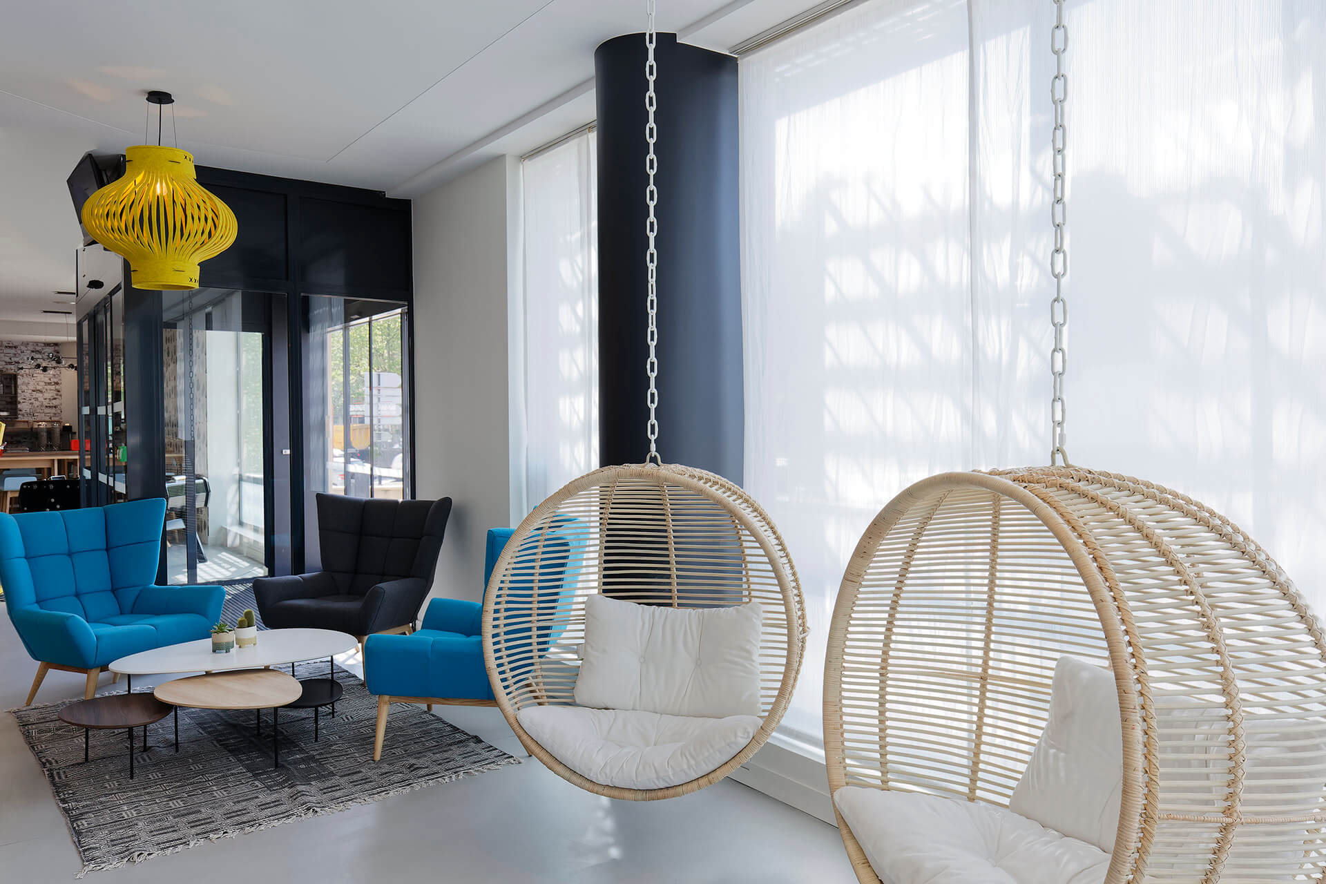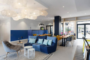 Bien connu des festivaliers de Jazz à Vienne et des vacanciers en voyage sur l’axe Nord-Sud de la France, l’hôtel IBIS est idéalement placé au bord de la nationale 7 et du Rhône, au cœur de la ville multimillénaire de Vienne. Le groupe hôtelier repreneur nous a demandé de repenser le rez-de-chaussée pour en faire un lieu de vie accueillant et sympathique à toute heure : création d’un bar autour des vins de la vallée du Rhône, d’un espace de restauration légère, de multiples espaces de détente ou de travail, de salles de réunions modulables.
